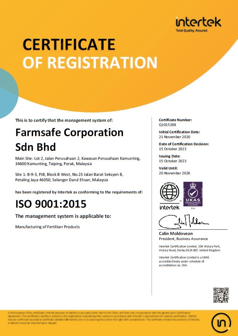 FARMSAFE, a sub-division of the Kenso Group, has been producing various fertiliser formulations since 1989 with the manufacturing facility based in Taiping Malaysia.